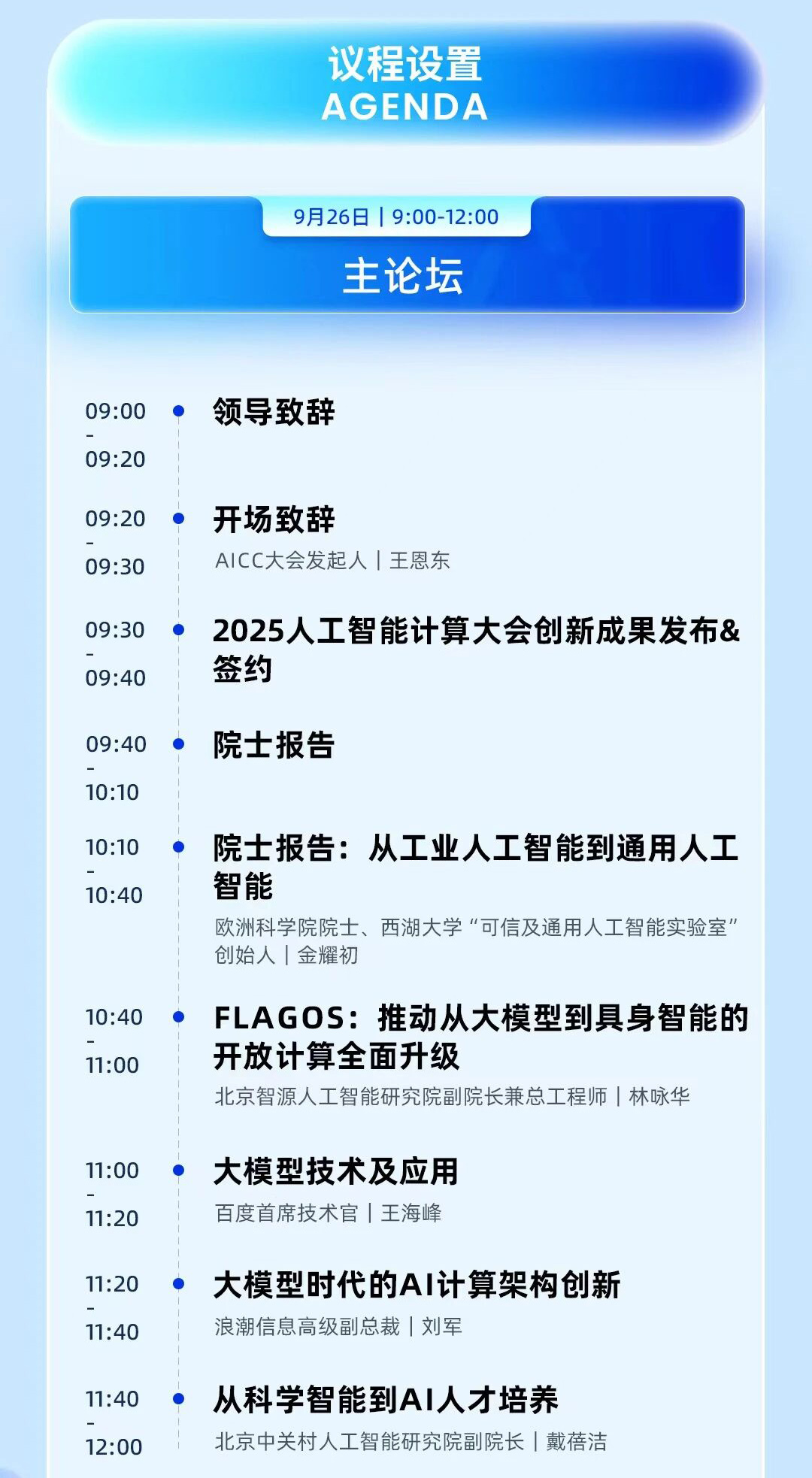 本届大会由北京市发展改革委、北京市科委中关村管委会、海淀区政府共同指导,中国人工智能学会支持,清华大学、北京智源人工智能研究院、北京中关村学院与中关村人工智能研究院、OCP开放计算基金会、中电标协OCTC等机构及人工智能产业的领军企业联合主办,益企研究院协办。大会将紧扣人工智能基础设施建设和国产AI算力体系优化,着力推动算法创新与应用落地,聚焦打造中国特色的人工智能产业生态。会议将围绕大模型、科学智能、具身智能、智能驾驶、低空经济等前沿方向展开深入研讨,加快推动人工智能技术走向规模化应用和产业化发展。北京作为国家人工智能创新应用先导区,产业基础坚实,创新要素集聚。截至2024年,北京人工智能企业数量已超2400家,核心产业规模近3500亿元,均占全国总量的一半,形成了覆盖基础芯片、算力设施、大模型研发与行业应用的完整生态链。为进一步加强北京市人工智能全产业链系统性布局,深化“人工智能+”应用,本届大会将推进构建开放多元的人工智能基础设施与应用服务生态,探索可复制可推广的发展路径,为我国人工智能产业链升级提供“北京样本”和实践示范。本届大会将在北京中关村展示中心举办。大会设置主论坛、多场主题分论坛及创新科技展区,集中展示人工智能领域的重大创新成果与应用实践。作为链接技术与应用的开放合作平台,大会将进一步推动产学研用深度融合与协同攻关,为加快人工智能+行动落地、构建高质量发展新优势提供强劲动能。
