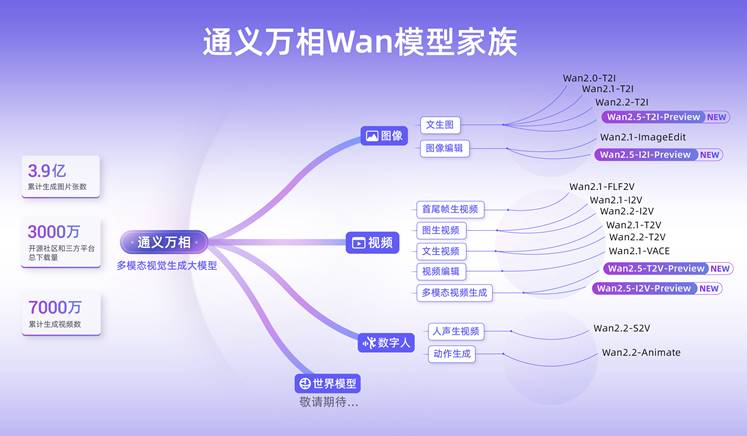 通义万相是通义大模型家族中的视觉基础模型,此次推出Wan2.5-preview系列模型,涵盖文生视频、图生视频、文生图和图像编辑四大模型。通义万相2.5视频生成模型能生成和画面匹配的人声、音效和音乐BGM,首次实现音画同步的视频生成能力,进一步降低电影级视频创作的门槛。通义万相2.5视频生成时长从5秒提升至10秒,支持24帧每秒的1080P高清视频生成,并进一步提升模型指令遵循能力。此次,通义万相2.5还全面升级了图像生成能力,可生成中英文文字和图表,支持图像编辑功能,输入一句话即可完成P图。