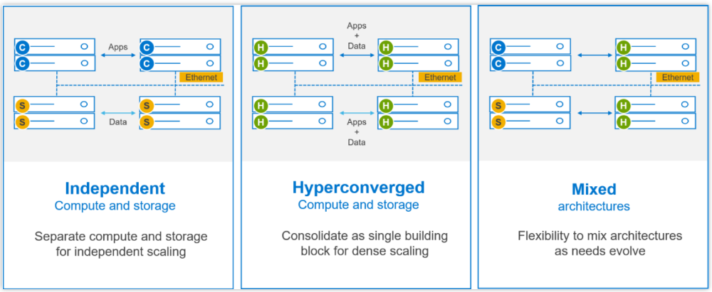 戴尔PowerFlex是一套软件定义的基础架构,优势在于可扩展性、性能和弹性,融合计算与块存储资源,支持多种工作负载与部署模式,适用于高性能、可扩展的关键任务环境,尤其高度适配超融合替换场景。用户可以在PowerFlex软件定义的存储块之上构建标准化的技术架构,并且可以运行各种虚拟化软件,包括VMware vSphere、Hyper-V、KVM等等。开放、灵活的特性避免了供应商锁定的风险——在过去一年当中,业内某头部供应商商业策略大调整可是企业IT设施的一大痛点啊,懂的都懂。